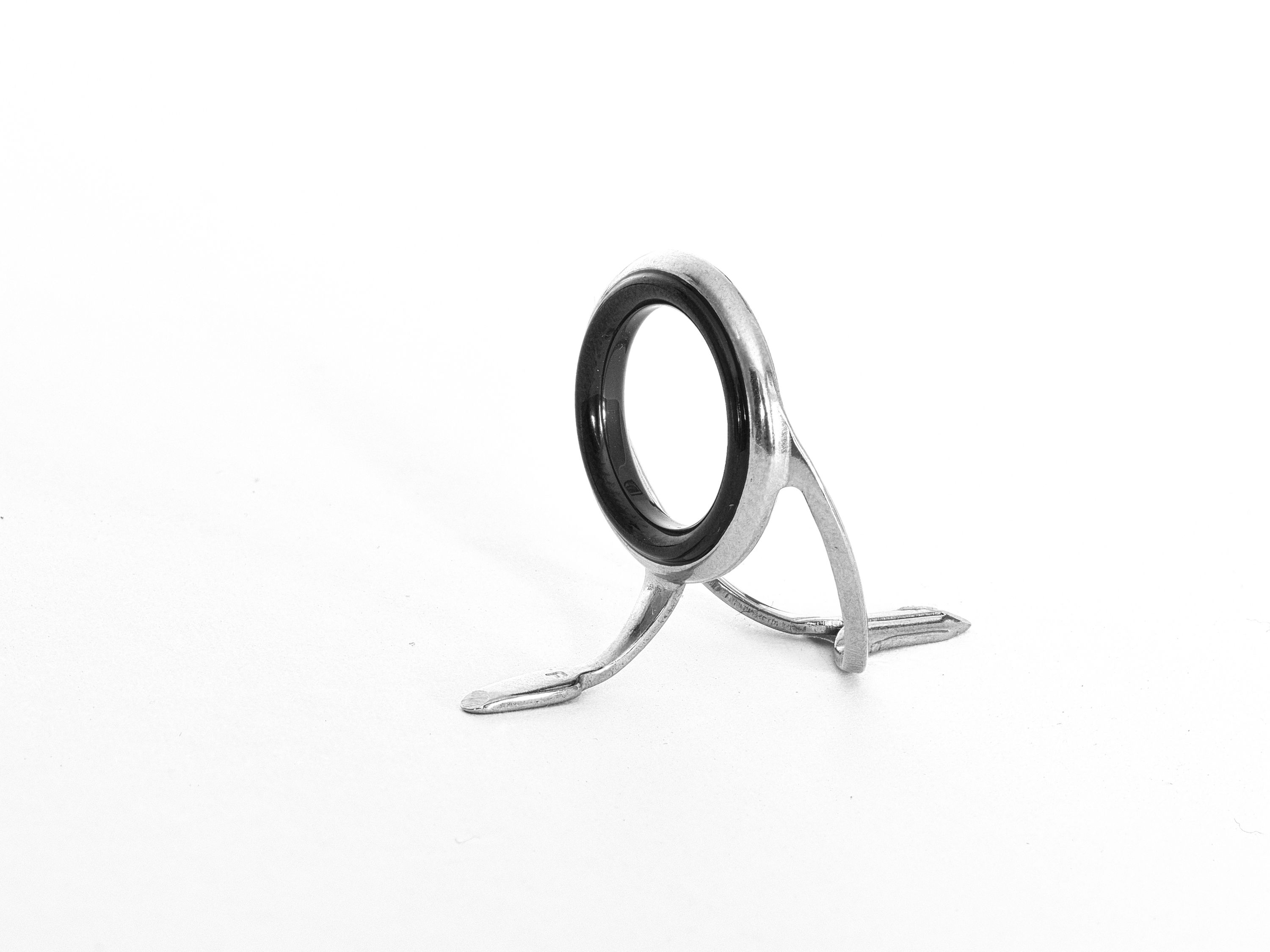Bright finish frame, 3 leg construction this is a light weight frame, that uses rolled edge frame, with Alconite centre. Ideal for fly rod stripper guides and spinning