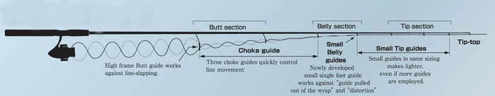 Japanese style surf fishing leader has thick end but it is tapered and the knot with the main line is rather small. Since the knot might pass through the small guides tip section without trouble, K-R concept has the potential to be applied to Japanese style surf fishing rod.