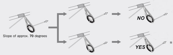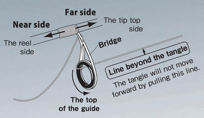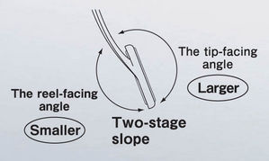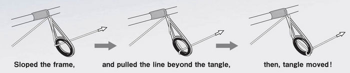 It is necessary to move the tangle forward toward the top of the guide in order to release the loop tangling. But pulling the line beyond the tangle just tightens the tangle. Therefore, Fuji engineers sloped the frame, and then, the tangle moved.